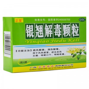 疏風解表,清熱解毒。用于外感風熱所致的流行性感冒,癥見發熱、頭痛、咳嗽、口干、咽喉疼痛。